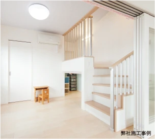 室内に2階を作ることはできないと思っておられる方も多いですが、ロフト形状であれば設置が可能です。下は大容量の収納に、上はお子さまの寝るスペースにといった活用もできるようになります。