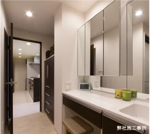 - 浴室、洗面回りを整理して、洗面空間も広げる