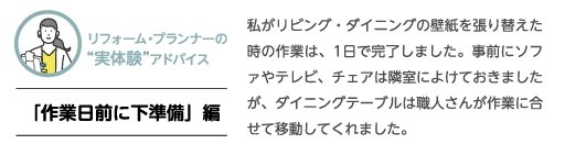 リフォームをする際に気になるのがどこまで片付ければいいのか、住んだままリフォームできるのか、その目安をご紹介いたします。