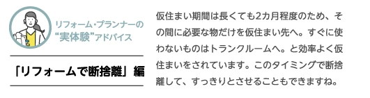 スケルトンリフォームはもちろん一部間取り変更を伴うリフォームの場合は、仮住まいをしてのリフォームが必要です。