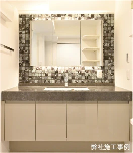 海外旅行などにも行きづらい今、家に居ながらにしてホテルのような癒しがあれば、素敵ですね。洗面室のリフォームでも、洗面化粧台の交換だけでなく、タイルや間接照明などを効果的に使えば、いっそう華やかな雰囲気に。ホテルのドレッシングルームのような空間とすれば、日常的に“気分の上がる”朝を迎えられます。