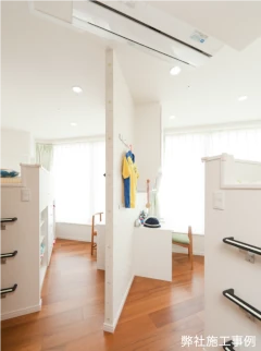 お子さまの成長に伴い、だんだんと「自分の部屋がほしい」という意識が芽生えてくるものです。例えば、二人のお子さまがいらっしゃる家庭で、部屋数も限られている場合、子ども部屋を上手く仕切ることで、プライベート空間をつくりだすこともできます。