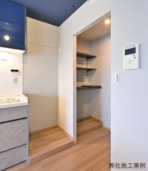 パントリーは常温の食材や調理器具などを保管しておく収納庫のことです。 キッチンの近くに収納スペースができると、キャビネットやカップボード収納に余裕が出て使い勝手が良くなります。お米や調味料のストックなども保管しやすくなり、買い置きのスペースとしても使用できます。特に収納不足になりやすいマンションのキッチンでは、パントリーを設置するだけでも使い勝手が向上します。