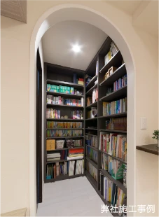 和室の押入を書庫に造り替え、蔵書がきれいに収まるようにしました。