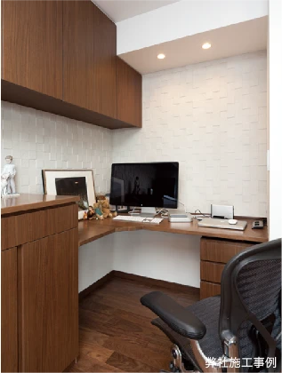 部屋の隅にデスクスペースを造作するすることも可能。L字型のデスクは、手が届きやすく使い勝手にも優れています。