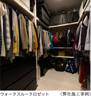 そのためには、大きな収納をどこに設けるか、そのためのスペースをどう捻出するかが課題となりますが、それにはお客さまの実際のライフスタイルを丁寧にヒアリングさせていただくことが欠かせません。お部屋と収納の使い方をきちんとうかがい、住戸全体の間取りも検討してプランニングすることで、収納の使い勝手が良くなるばかりか、他の居室もより快適に使えるようになります。間取り変更も視野に入れて、大きな収納をご検討されてはいかがでしょうか。