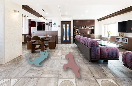 可愛い愛犬・愛猫も、床や壁を爪で傷つけてしまうことがあります。とはいえ、ストレスなく自由に暮らせるようにしてあげたい…そんなときは、床や腰壁を傷つきにくいタイルにすると安心です。