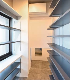 シューズインクロゼットって、いろいろな施工写真を見ていると憧れるじゃないですか。提案をいただいたときは「部屋が狭くならないのか?」とも思ったんですが、これは本当にやってよかった!入口にロールスクリーンが取り付けてありますが、普段は閉めていません。玄関、廊下とこのシューズインクロゼットの開かれた空間で、広く感じられます。この提案には本当に感謝しています。