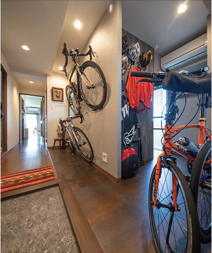 玄関からつながるスペースに趣味の自転車を置けるスペースを新設しました。