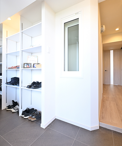 また、窓があるスペースを土間にすることで玄関を明るくすることも可能です。