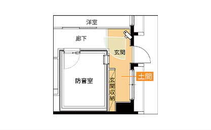最下階以外では下階住戸への音の影響により設置できない場合があり、また居室部分を土間として広げる場合は、下階への遮音性能を確保するため二重床の採用など適切な遮音対策を講じる必要があります。