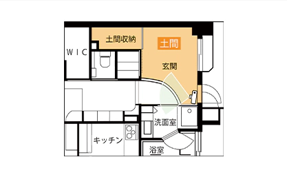 玄関から土間を通って移動できる動線を新たに設けることで、回遊性を高め、お部屋の使い勝手をよくするばかりでなく、住戸の風通しを改善して湿気をこもりにくくすることができます。