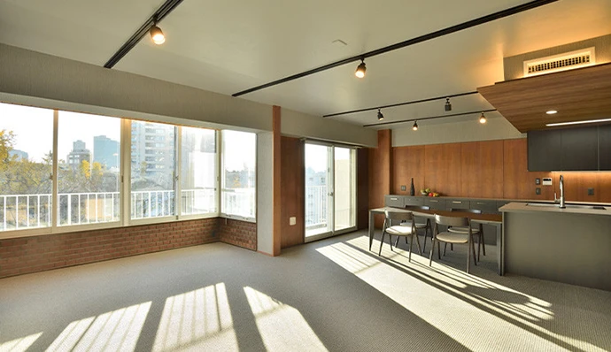 築50年のヴィンテージマンションを購入したWさま。購入する際に、前オーナーさまから譲り受けたアンティーク家具やステンドグラスなど、さまざまなアイテムの質感を活かしつつ、ご家族の今の生活スタイルに沿ったプランをご希望。古さを活かした美しい空間が実現しました。