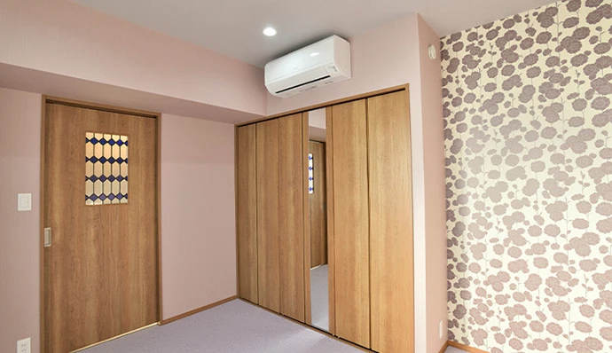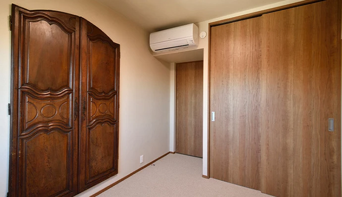 お客さまがご要望されたアンティークと近代的なものを組み合わせたリフォームが完成しました。給湯器、エアコン、住宅設備、照明器具などを最新のものに変更し、カーペットには新たに床暖房を設置しました。インテリアのこだわりと共に、生活が豊かになるアイテムを取り入れ暮らしやすさも実現しました。
