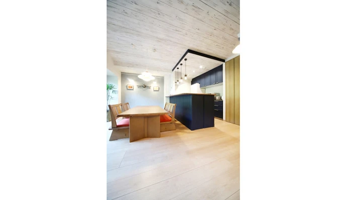 築22年のマンションにお住いのMさま。水回りの清掃にかける時間を短くしたい、愛犬たちとより快適に過ごせるようにしたい、と考え始めたのがリフォームのきっかけでした。将来を見据えて膝や腰に負担の少ない生活スタイルにしたいとご要望のあったMさまに、段差を無くした広く使いやすい間取りと、愛犬たちが滑りにくい床材をご提案。ご希望だった北欧メーカーの照明に合わせた内装デザインをお部屋全体に採用することで、ご夫婦にも愛犬たちにもやさしい統一感のある空間になりました。