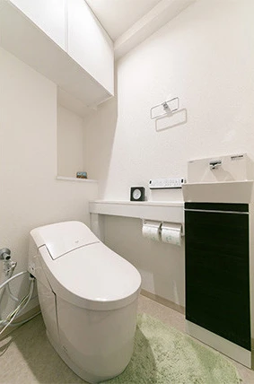 トイレは自動開閉や自動洗浄を備えた高機能モデルに。