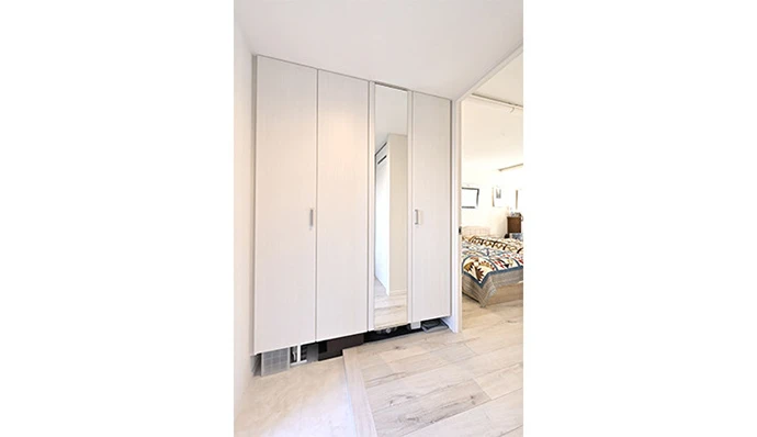 玄関スペースをゆったり広く取り、トール型の玄関収納を設置。玄関の圧迫感がなくなり、収納スペースも格段に広くなりました。