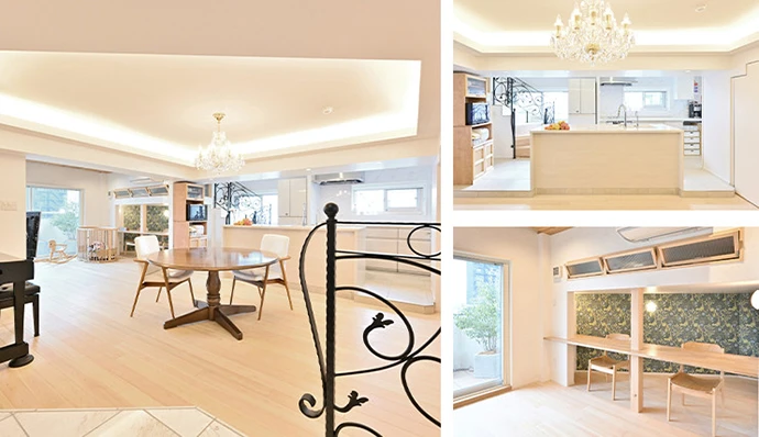 広々としたリビング・ダイニングを中心に配置するというリフォームプランを明確にお持ちのお客さまでしたので、ご要望をしっかり確認し、動線や使い勝手を考慮しながら打ち合わせを進めていきました。アイアン調や大理石などクラシックな雰囲気がお好きな旦那さまと、無垢の木材などナチュラルな雰囲気がお好きな奥さま。ご夫妻の雰囲気がマッチした素敵な空間が実現したと思います。