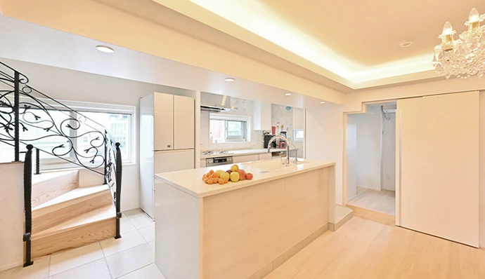 - リビング・キッチン・ダイニングを一続きの空間にする。