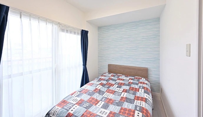 ご主人の寝室として使用する洋室(3)は、フローリングとクロスを張り替えました。空をイメージしたブルーのクロスで爽やかな印象になりました。