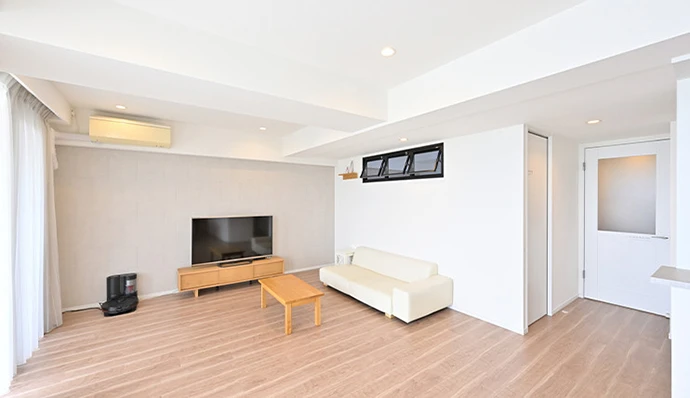 気に入って購入されたマンションを、ご入居に合わせてリフォームするというスケジュールの中で、プランニングをスタートしました。白を基調としたインテリアがお好みとうかがい、色づかいや雰囲気はもちろん、実際にお住まいになってからの細かな使い勝手も考慮しました。お手持ちの家具に合うようクロスの配色や建具の雰囲気を選び、Hさまのセンスを大切にした“スタイルの統一感”をテーマとしたことで、素敵なお住まいができました。