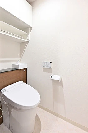 トイレは最新の節水型トイレに変更。収納スペースにはお掃除道具やトイレットペーパーを収納することができます。