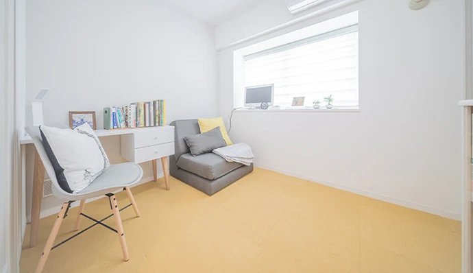 ご主人さまが読書をしながらゆったりと過ごされる洋室(2)はクロスとフローリングを張り替え、明るい空間になりました。(リフォーム後に黄色のカーペットを購入されました。)