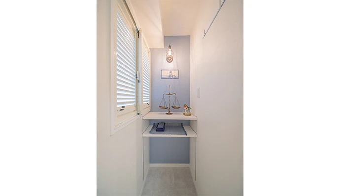 お客さまのご希望をお聞きし、ご要望が叶えられるよう具体的にプランニングしました。ポルトガルのインテリアがお好きということで、内装デザインもそれに沿ったものをご提案し、本邸に入りきらないお持ちの物に合わせた収納計画、水回りの動線、機能性にもこだわり、ご家族がセカンドハウスとして快適に過ごせる、お客さまのこだわりの空間をご提案することができました。
