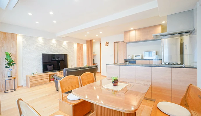 プランナーさんからは、私たちの基本的なオーダーに加え、予算の中でさまざまなプランをご提案いただきました。いろいろな提案を検討することができて、納得できるリフォームになったと思います。収納の悩みは解消し、開放的なキッチンや広いリビング・ダイニングは、思い描いていた以上の仕上がり。これから夫婦二人で快適に暮らしていけると楽しみにしています。
