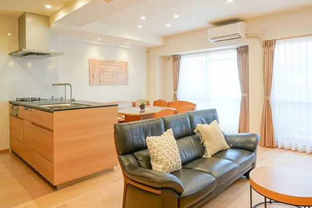 現在のマンションに、家族5人でお住まいだったHさま。お子さまの独立により、ご夫妻お二人での暮らしとなったことを機にリフォームを決意されました。リビング・ダイニングを広く寛げる空間にしたい、収納を増やしたいとのご要望でした。そこで、和室をなくすことでリビング・ダイニングを拡張し、収納やご主人さまのデスクを造作する提案をしました。十分な収納を確保し、すっきりと片付いたリビング・ダイニングでお二人が充実した時間を過ごせる暮らしを実現しました。