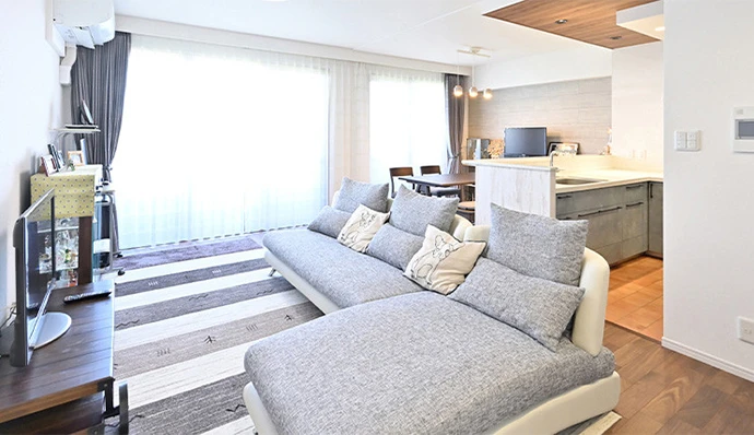 わたしたちの要望をすべて叶えていただき、思っていたとおりの住まいになりました。キッチンが明るく風通しも良くなり、新たに広いパントリーもできたので収納量にも満足しています。リビング・ダイニングはバルコニー側の2つの窓に面することで、明るく気持ちの良い空間となりました。部屋全体が広くなったように感じられて、とても満足しています。
