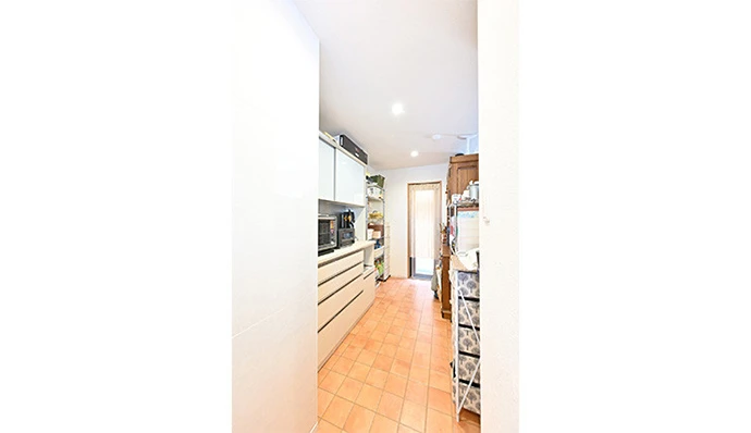 以前、キッチンだったスペースにパントリーを新設しました。リビング・ダイニングに置いていた食器棚などの収納家具や小物をパントリーにまとめたことで、ダイニングもすっきりし、広々と使えるようになりました。