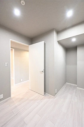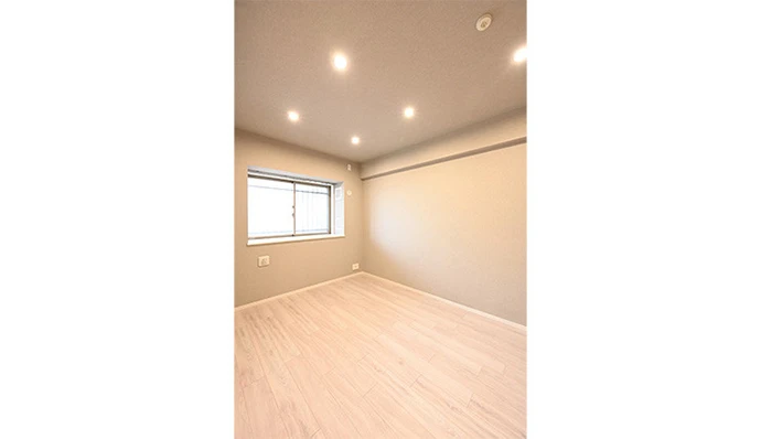 ゲストルームとして使用する洋室(1)はクロスとフローリングを張り替え、天井照明はシーリングライトからダウンライトに変えすっきりと高さが感じられる空間になりました。