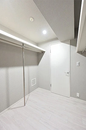 元々の洋室(2)を十分な広さの納戸に変更しました。玄関の靴や大きなゴルフバックまで格納できる十分な収納量を確保しました。