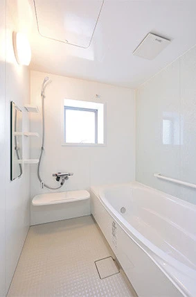 浴室は、窓の開け閉めがしやすいように浴槽の向きを変更。掃除が大変だったので、サイズを一回り小さくしました。手すりを増やし、入り口は引き戸に変更して、バリアフリー面にも配慮しています。