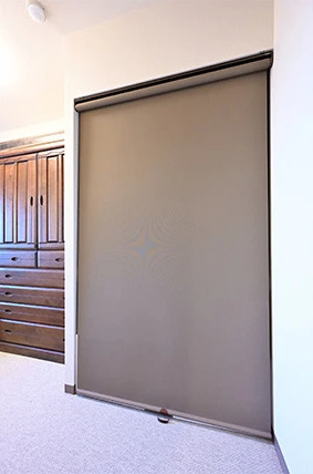 洋室(2)は、収納のためのスペースとしました。お手持ちのタンスを収めたほか、クロゼットを広げ、枕棚や中棚のある押入スペースを造作しました。押入スペースは、開口部が広くとれるロールスクリーンを採用し、使いやすいよう配慮しました。