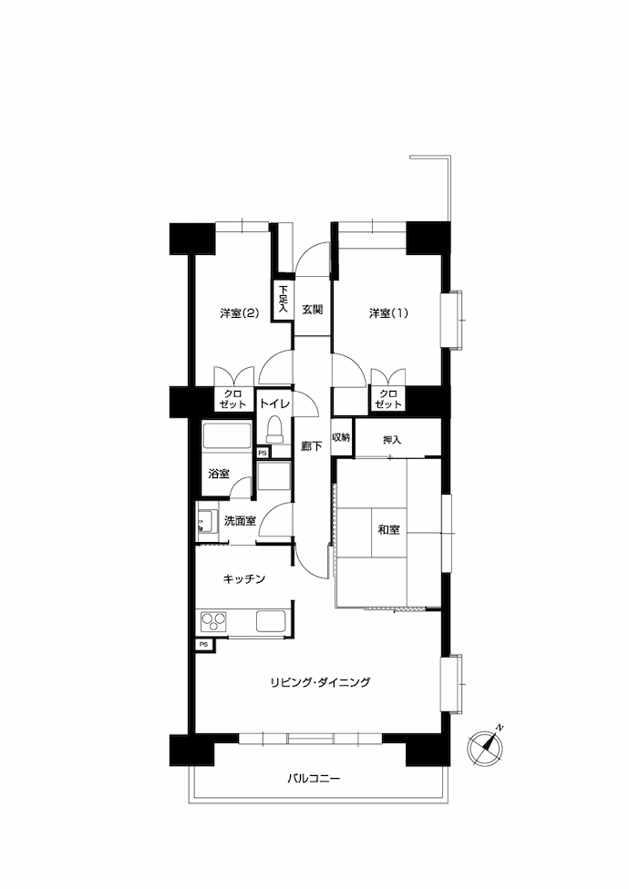 - 洋室(1)が結露しやすいので対策してほしい。