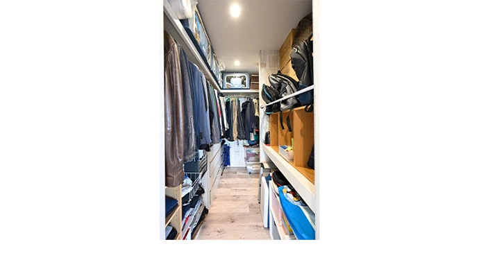 ご夫婦の洋服や来客用布団などを、一カ所にまとめてしまえるようにしたいとのご希望で、リフォーム前の洋室(2)をたっぷりとした収納量のあるウォークインクロゼットに変更しました。