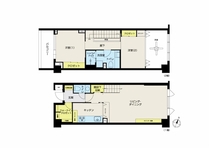 - 洋室収納、玄関収納、キッチンカウンター収納、シューズインクロゼット