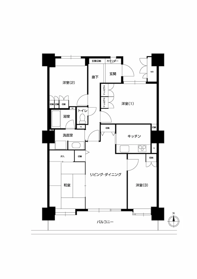 - 部屋数を減らして、広く開放的な空間にしたい(和室は不要)。