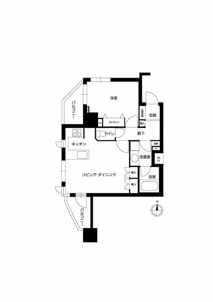 - 1LDKの間取りを、より開放的に使えるように変更したい(廊下は不要)