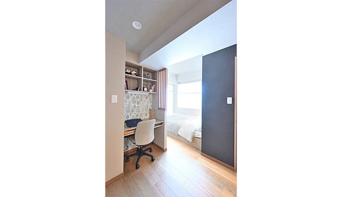 テレワーク用にデスクを造作しました。仕事に集中できる専用のスペースを設けることで、オンとオフが切り替えやすくなりました。