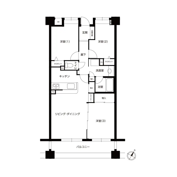 - キッチン、トイレ、洗面室、ユニットバス