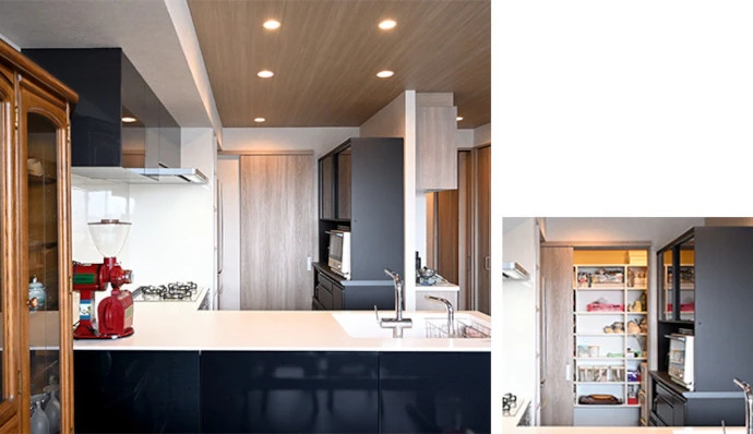 「キッチンを広くしたい」というご要望を受け、I型だったキッチンをL型に変更。これまでのキッチンは一部が壁で仕切られていましたがオープンキッチンへ変更し、開放感を感じられるようになりました。さらにキッチンの奥にはパントリーを設置。収納量がアップしたうえに、扉を閉めればすっきりとした印象になります。