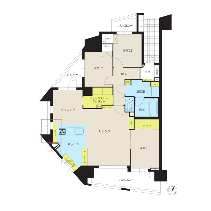 角住戸の魅力を生かし、