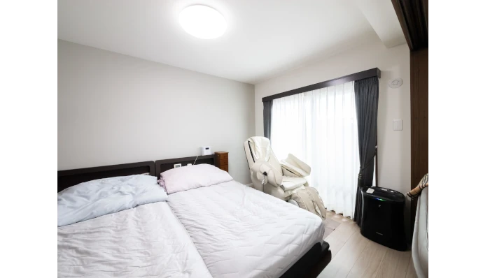 寝室と生活空間がつながったことで、開放的で快適な空間になりました。インテリアを白ベースにしていただいたおかげで、同じ空間なのに以前よりも広く明るく感じられます。新設した土間は、靴を履いたまま物の出し入れができ、とても便利です。夫婦二人でゆったりと過ごせる住まいになりました。これからの暮らしがますます楽しみです。