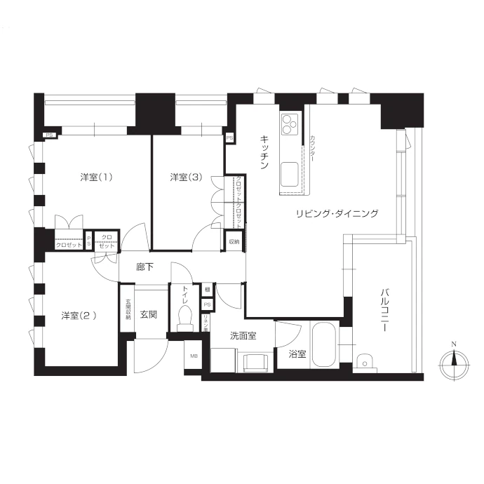 - リビング収納、洋室収納、玄関収納、キッチンカウンター収納、ウォークインクロゼット