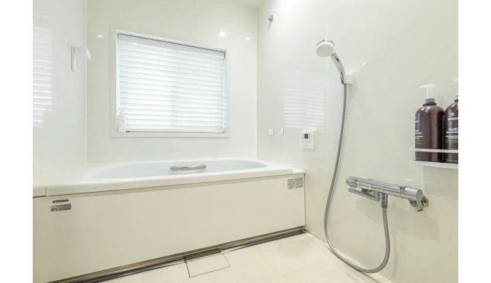 浴室には、保温性が高く、汚れが付きにくいホーロー製の浴槽を採用しました。ガラス質を焼き付けた光沢のある美しい見た目もNさまが気に入られているポイントです。窓には電動式のブラインドを設置。入浴前後の開け閉めが簡単にでき、便利に使える仕様となっています。