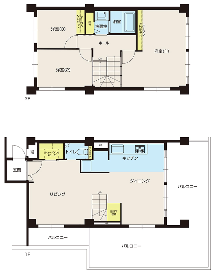 - 洋室収納、シューズインクローク、洗面室収納、階段下収納