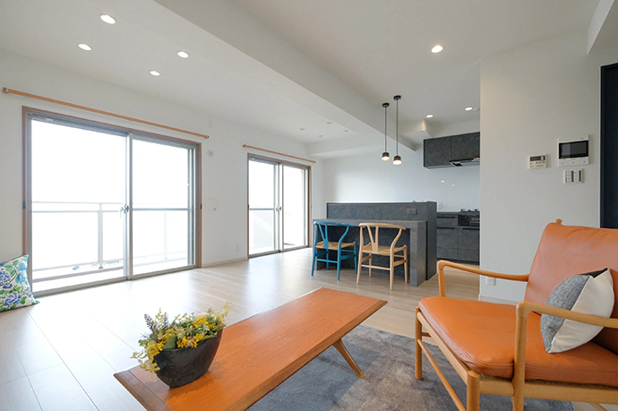 Sさまは、リビング・ダイニングの狭さや収納の少なさを解消するため、和室をなくして空間を広げることを希望されていました。そのご要望を踏まえつつ、さらに快適で使いやすい住まいとなるよう、キッチンを2列式に変え、ウォークスルークロゼットを新設するプランをご提案しました。これにより広がりのある空間に加え、より動きやすく暮らしやすい住まいにすることができました。